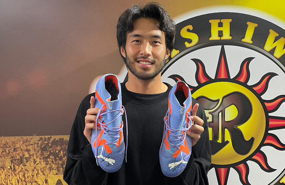 これは、柏レイソル選手会の発案で2003年から実施しているもので、ホームゲーム開催時(一部試合を除く)に選手各自がスパイクなどサッカーに関連する品々を出品いたします。売上金は、ホームタウンエリアである東葛8市へのチケット寄贈、選手会主催の福祉活動などに活用させていただきます。