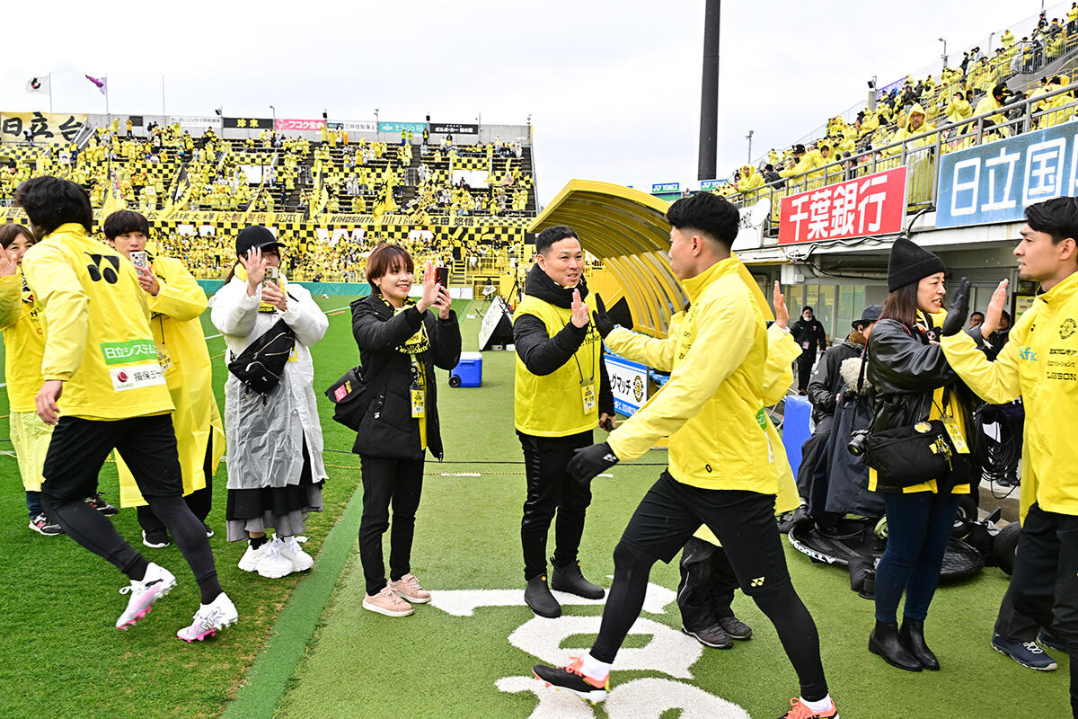 【勝利のハイタッチ】 柏レイソルが勝利した場合のみ、試合終了後に選手とハイタッチができるイベントです。 ※柏レイソルが勝利した場合のみの実施となります |