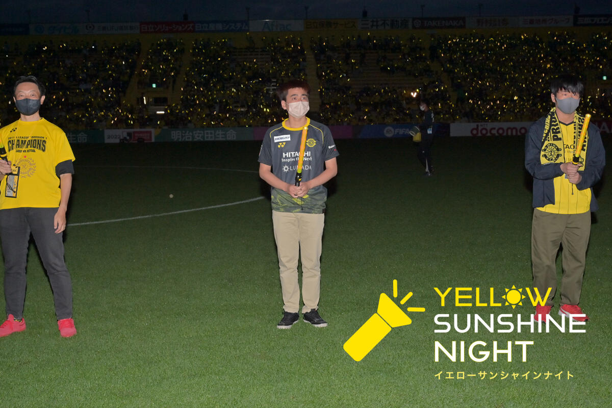 【シャイニングキャスト】 ピッチ上で黄色の光を灯しながら選手を迎え入れていただくイベントです。 |