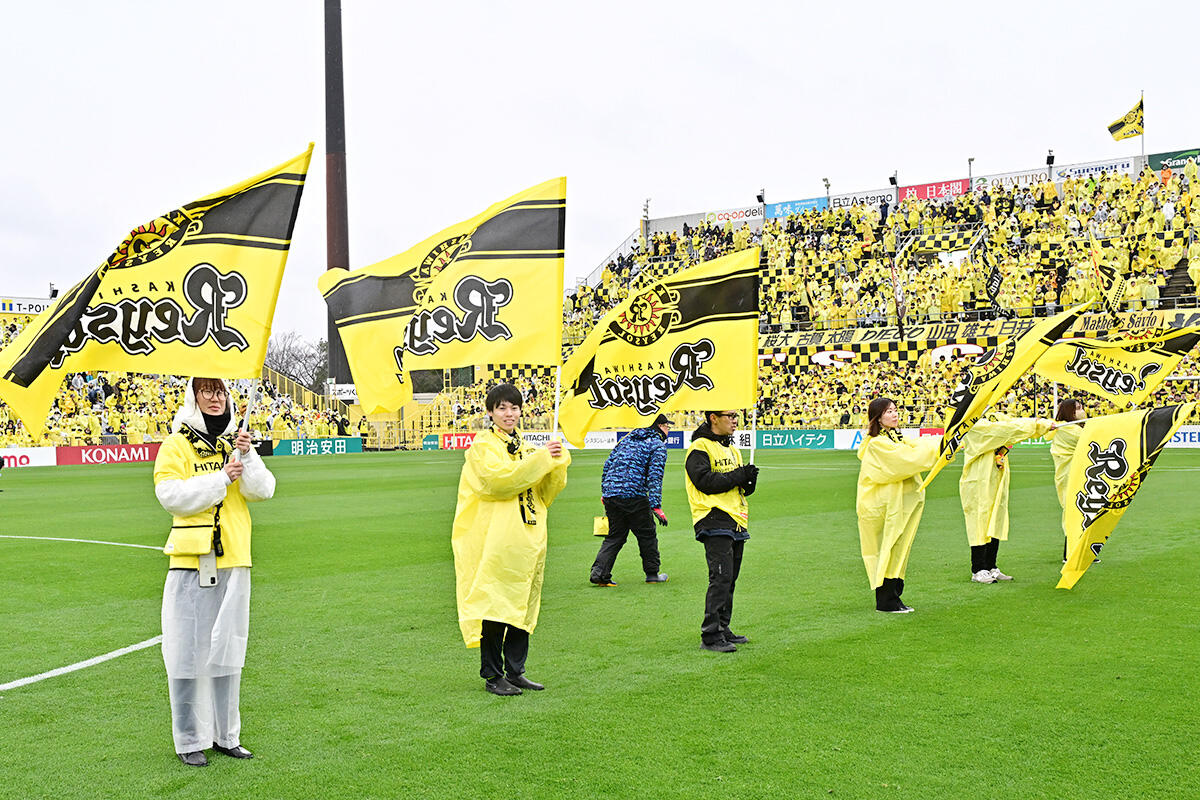 【ライジングキャスト】 選手入場時、ピッチ上でフラッグを掲げて選手を迎え入れるイベントです。 |