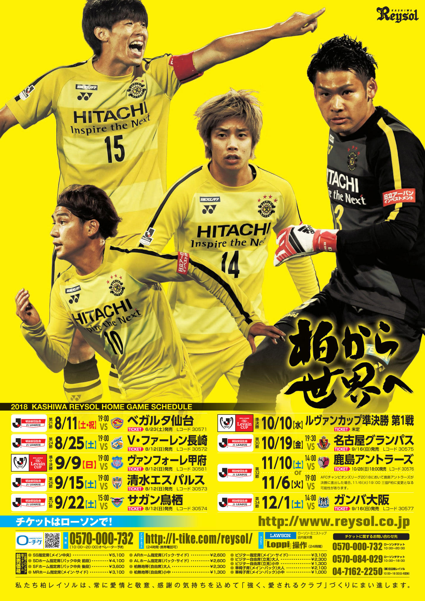 柏レイソル2018シーズンの第2回日程ポスターが完成しました。今回のモデルは、GK中村 航輔、MFキム ボギョン、FW伊東 純也、FW江坂 任の4選手です。