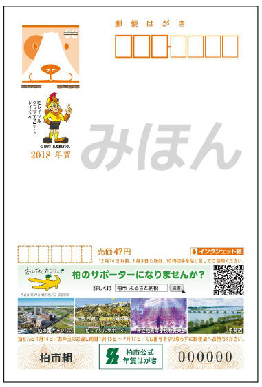 この年賀はがきは、特に柏市外の皆様に「柏市ふるさと寄附金事業のPR」など、柏の魅力発信を進めていくという発行趣旨もあり、1枚47円で販売されます。