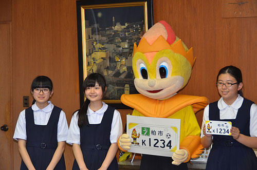 これは、柏ナンバー10周年を記念し、柏市民に自分のまちへの愛着を深めてもらうことを目的に導入されるもので、市内中学校美術部からデザイン案を募り、市民投票の結果、柏市立中原中学校美術部の作品に決定したものです。