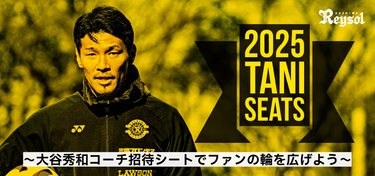 大谷 秀和コーチが、サポーターの皆様をレイソルホームゲームにご招待する『TANI SEATS』を2025シーズンも実施いたします。この招待席は、大谷コーチが『もっと多くの人にレイソルを知ってもらいたい』『新しいサポーターを増やしたい』という思いをこめて、2009シーズンから行っているものです。