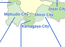 Matsudo Cityhttp://www.city.matsudo.chiba.jp/In 2003, Matsudo celebrated the 60th anniversary of its founding as a city. Its population ranks third in the prefecture. During the Edo Period, this city prospered as an inn town on the Mito Kaido, and due to its location on both sides of the Edo River, close to Tokyo Prefecture, it has developed as one of the leading lifestyle cities in the Tokyo metropolitan area. |