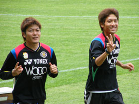 ![]() 午前中は新潟戦先発選手がリカバー。「オレも撮ってくれた?フォトギャラ乗るかなぁ」という神田トレーナー。その脇の大谷&増嶋選手も笑顔です~ ![]() こちらはVサインの近藤&田中選手! ![]() 北嶋選手&布部コーチの師弟コンビ。 ![]() 栗澤選手と井原コーチ。こちらは守備の確認でしょうか。 ![]() ブラジルコンビに公文通訳。レアンドロの両手がお茶目なポーズになってます(笑) ![]() さあ午後からは練習試合。まずは工藤選手があいさつ代わりの強烈シュート! ![]() 献上したPKのピンチ。しかしここはGK稲田選手が見事な横っ跳びでスーパーセーブ! ![]() 水野選手は右サイドからの切れるドリブルでチャンスを演出! ![]() ベテランも負けていません。激しい守備を見せる藏川選手に... ![]() ボランチ兵働選手も球際で厳しいチェック! |