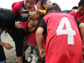 タニは女の子たちに大人気。前日の試合中とはまるで違うリラックスした笑顔がステキですね