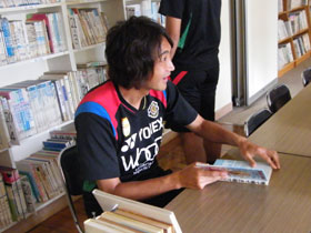 キタジは控え室となった図書室で「うわぁー懐かしい!」と思い出の本を手にしてすでにテンションがMAXです