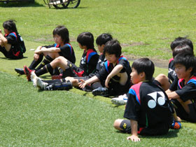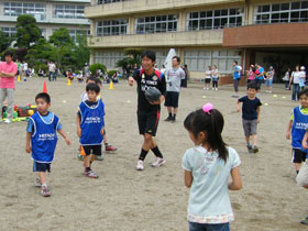 ミニゲームではみんなでボールに群がり、コートもライン関係なくどこまでも自由な子どもたちを仕切ったヤマ。ベテランならではの手腕を発揮していました