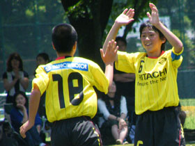 「いいぞ!ナイスシュート!」と声をかける相馬選手。「すごく楽しかったです!」と新人選手には貴重な経験だったようです