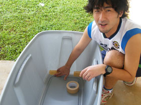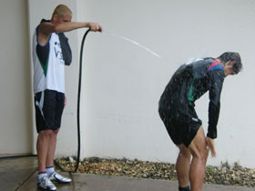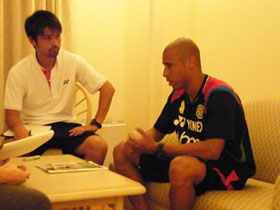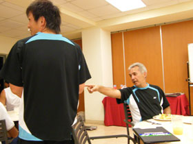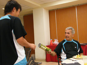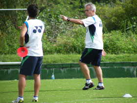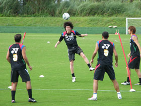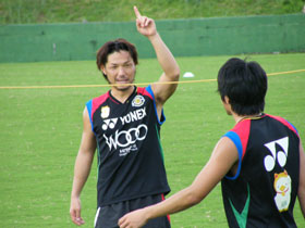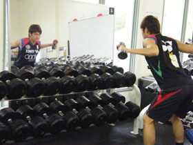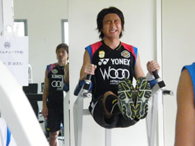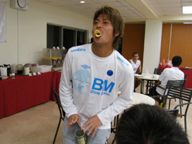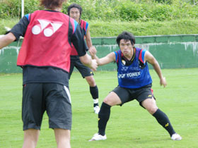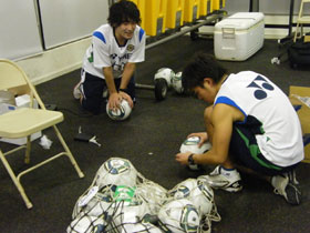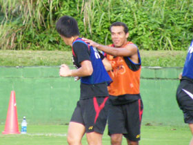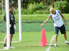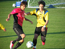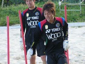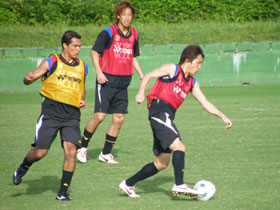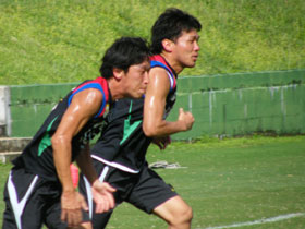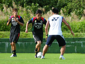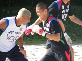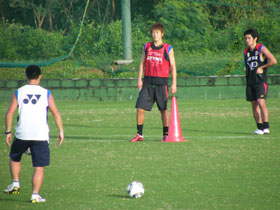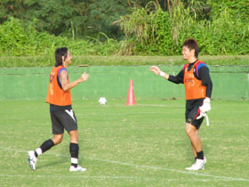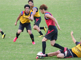 筋トレの後はフィジカル系のボールトレーニング。大津選手が藏川選手のボールを襲いかかって奪おうと激しくアタック!