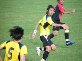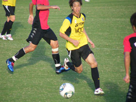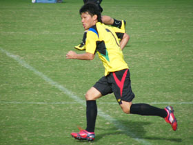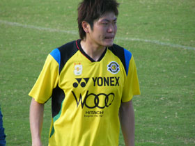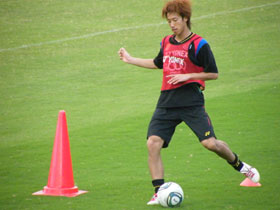 誰よりも早く多く動いて周りのサポートへ。献身的に走る栗澤選手です。