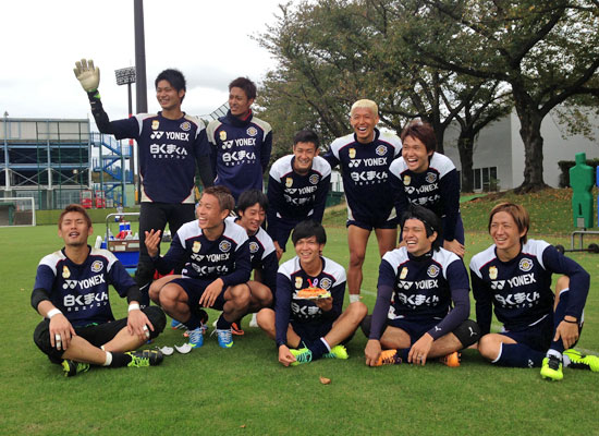 この日19歳の誕生日を迎えた小林祐介選手を チームメイトでお祝いしました! (写真をクリックすると大きな画像も見られます)