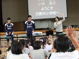 学校訪問活動の『レイソルしま専科』 木村裕選手と小林祐介選手が、柏市立花野井小学校を訪問しました。 温かな歓迎と楽しい触れ合いの時間をありがとうございました!