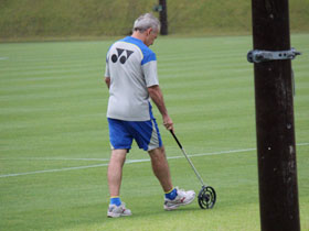 [10]練習後、ニヤリと距離計測器を持ちだし