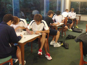 キャンプ中もコミュニケーションを欠かしません。