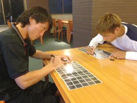[11]夕食後はトレーディングカードのサイン書き。