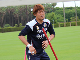 [3]澤選手はボールを使っての別メニュー。