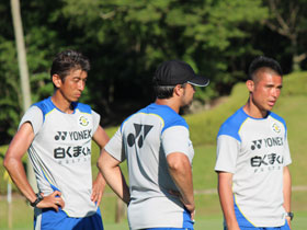 [12]眩しい太陽でコーチ陣もすっかり日焼け。