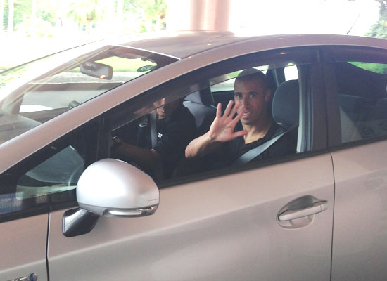 [7]日曜日のスペシャルマッチへいち早く出発したワグネル選手。笑顔で活躍を誓います。