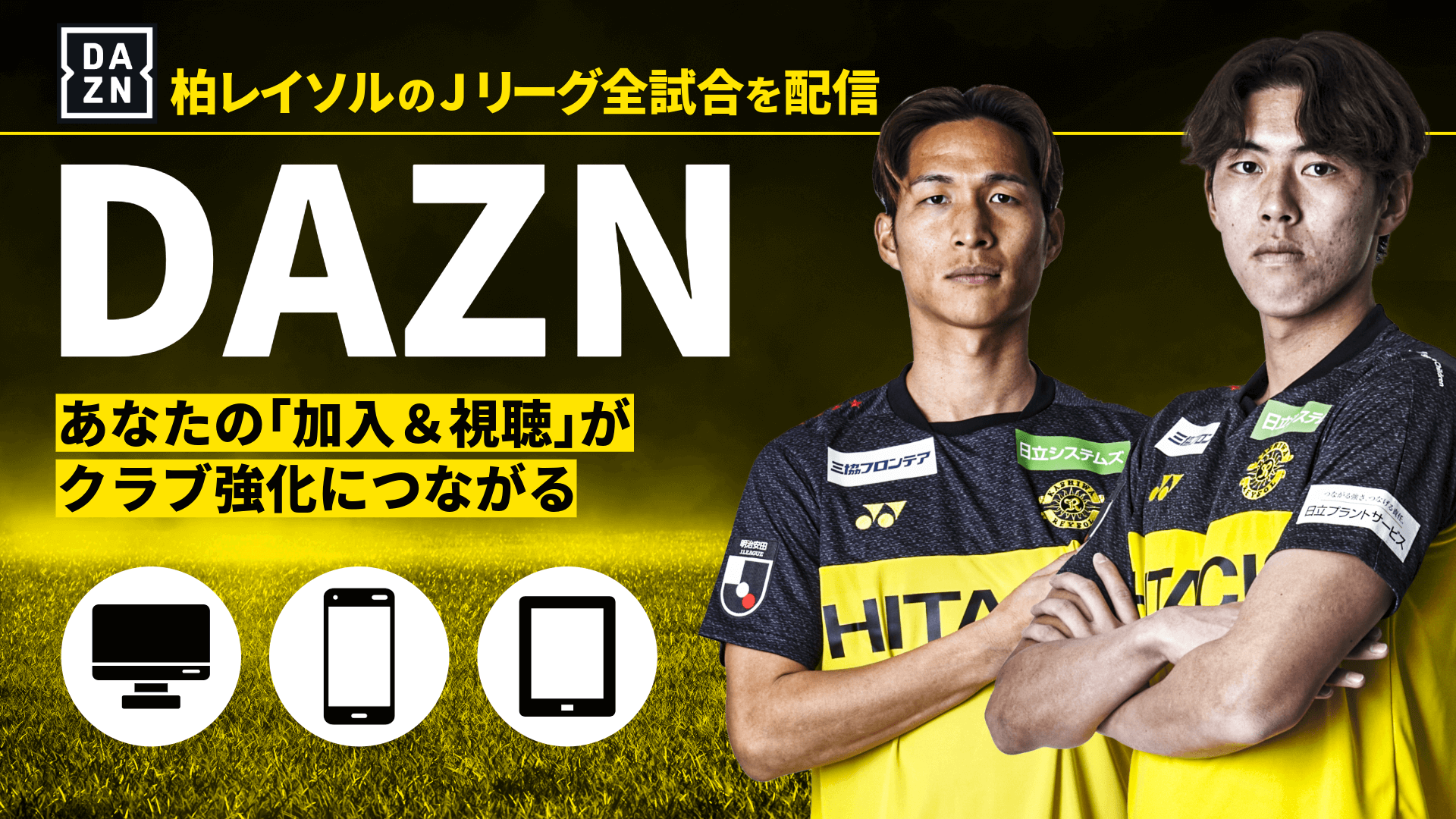 レイソル戦をDAZNで“視聴”するとクラブに配分金が還元されます。ライブ配信はもちろん、見逃し配信やハイライトもぜひご視聴ください!