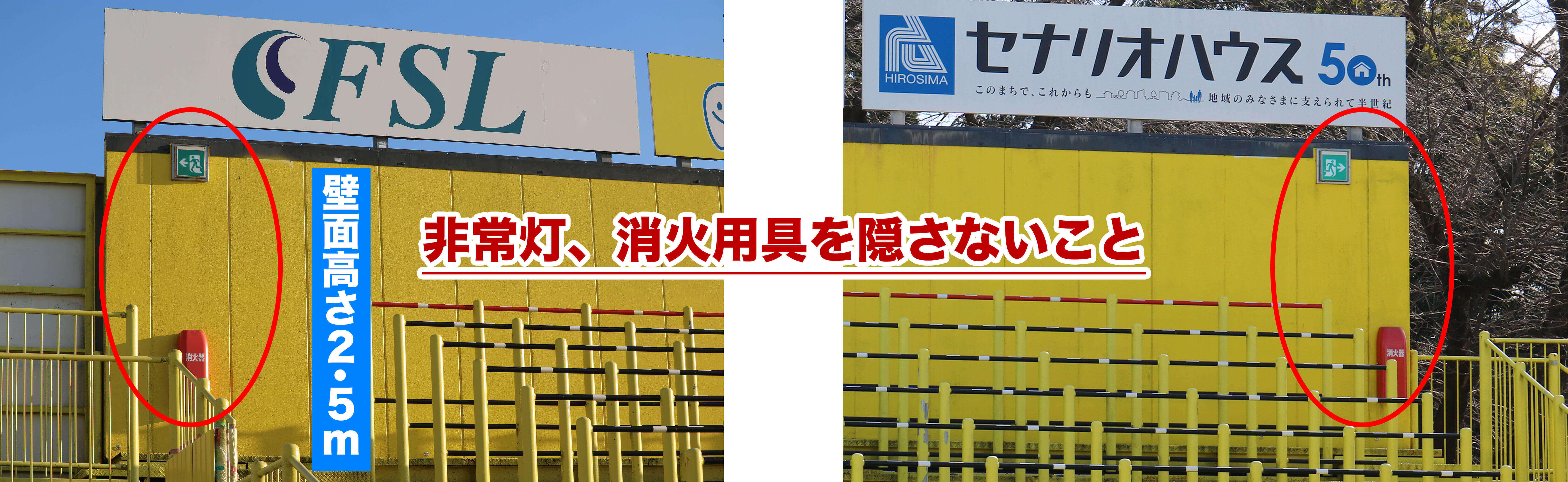 ◆消火用具・非常灯、看板を覆わないようご注意ください。