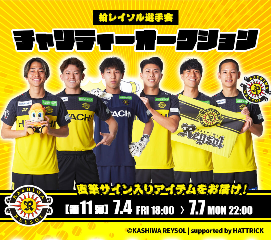 これは、柏レイソル選手会の発案で2003年から実施しているもので、ホームゲーム開催時(一部試合を除く)に選手各自がスパイクなどサッカーに関連する品々を出品いたします。売上金は、ホームタウンエリアである東葛8市へのチケット寄贈、選手会主催の福祉活動などに活用させていただきます。