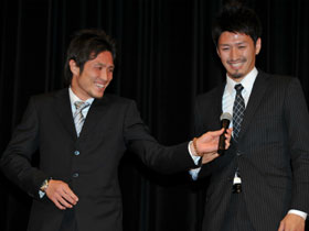1月14日(土) 大谷選手、田中選手が、NHK-BS1「Jリーグタイム」に生出演しました。解説者の早野宏史さんや長谷川健太さんと昨シーズンの振り返り、今シーズンの新たな目標などについて語りました。キャスターの伊藤友里さんからは、故郷福岡のお土産までいただきました。スタッフの皆様、ありがとうございました! |