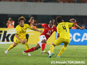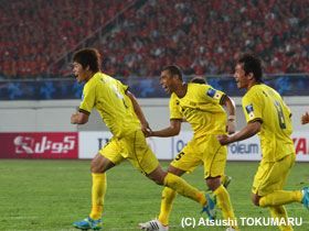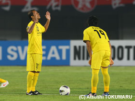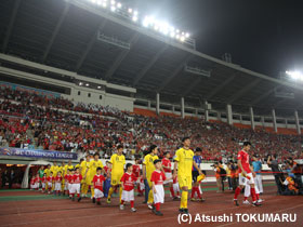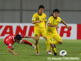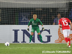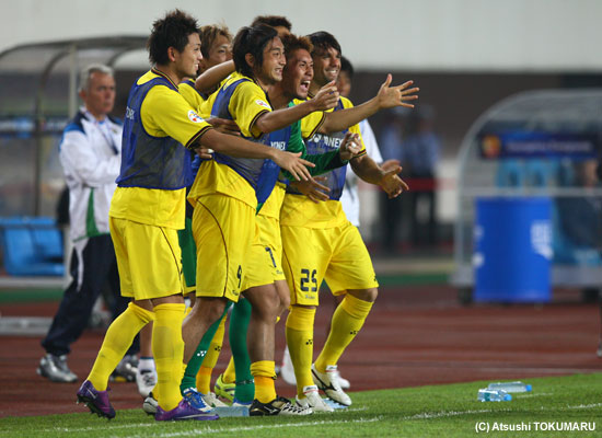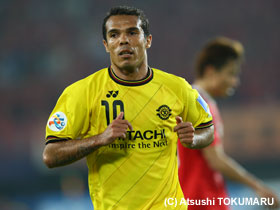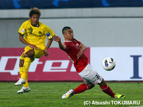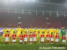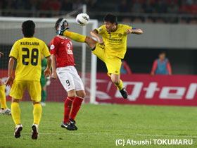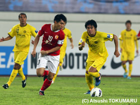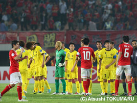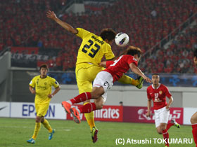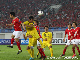 4月17日(火) ACLの4戦目は、アウェイ中国での広州恒大。真っ赤に染まったスタンド、超アウェイのなか、先制されながらも酒井選手のヘディングで同点に。しかし、相手ブラジル人のシュートを止めきれず惜しくも敗戦。1勝1分2敗となりました。 |