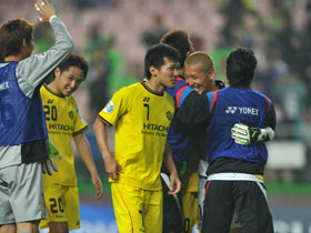 5月15日(火) ACLグループリーグの最終戦、全北現代とのアウェイゲーム。決勝トーナメント進出へ勝つしかなかったレイソル、前半から組織的な守備が機能してリズムをつかむと、後半にレアンドロ、田中のゴールで2点をリード。そのまま完封で守り切り、大逆転でラウンド16進出を決めました。 |
